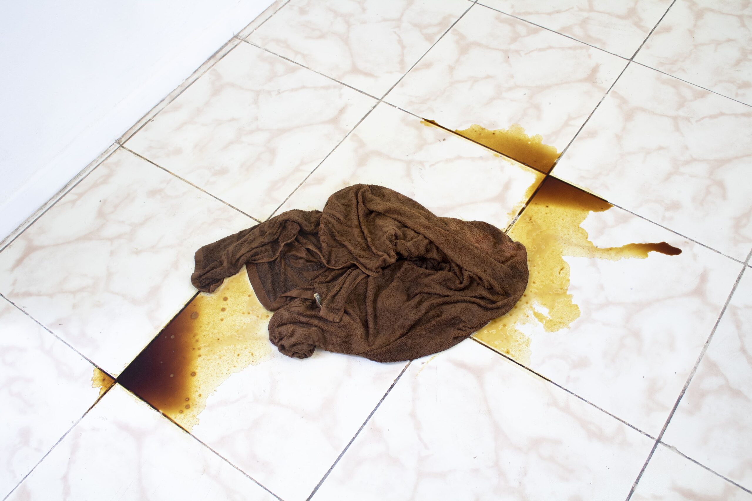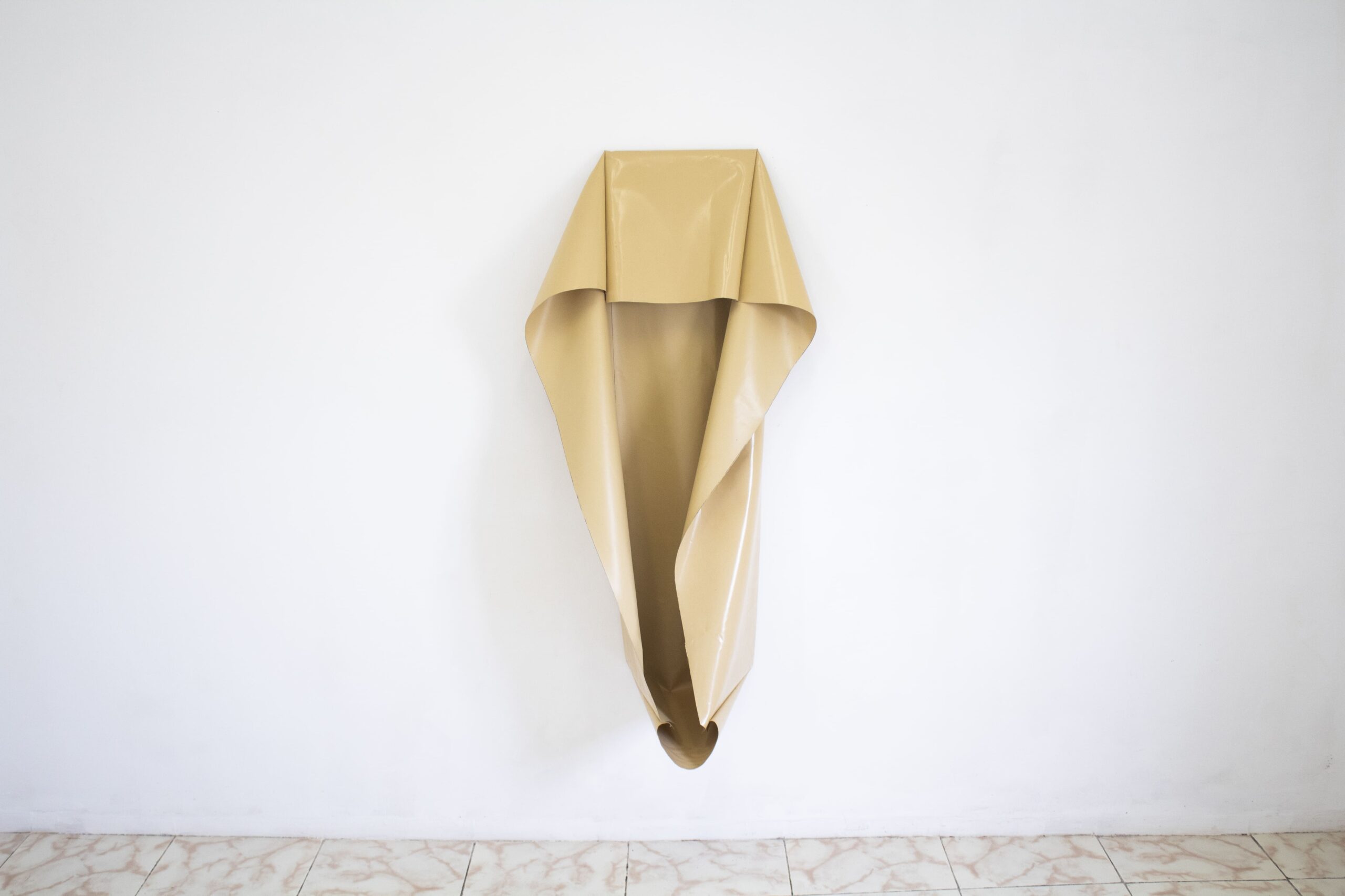 Sin título. De la serie: Formalismo vigoréxico, 2021. Toalla y bronceador (Pro tan). Medidas variables