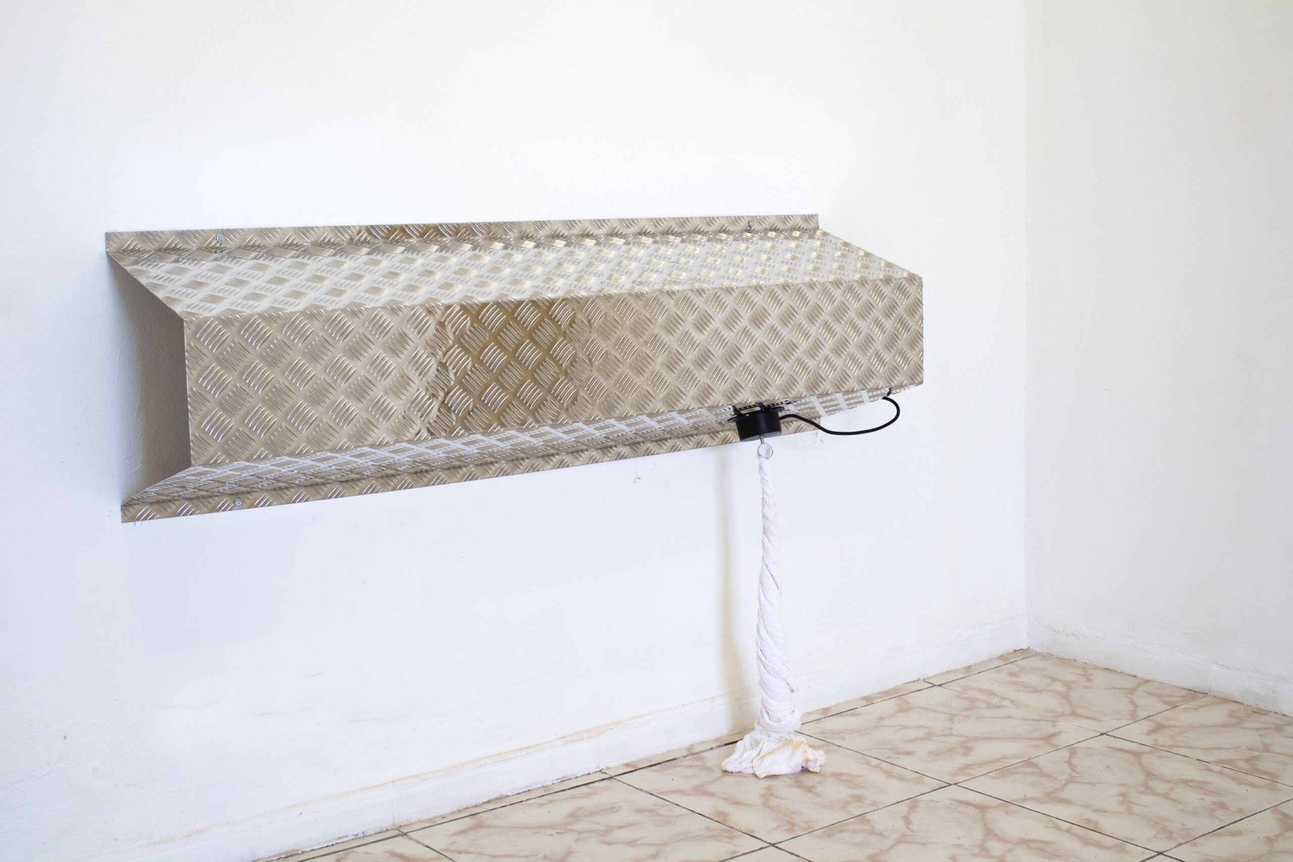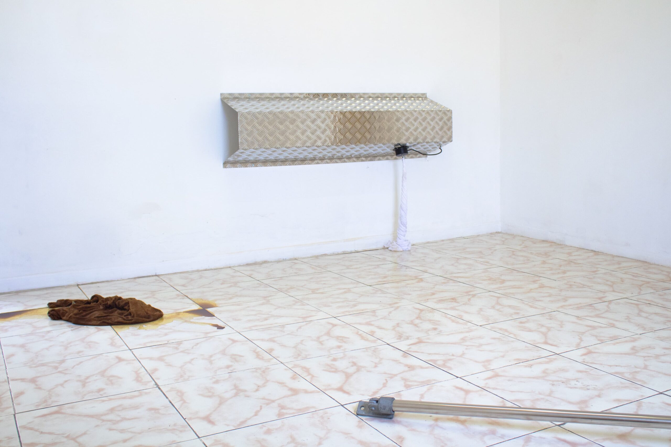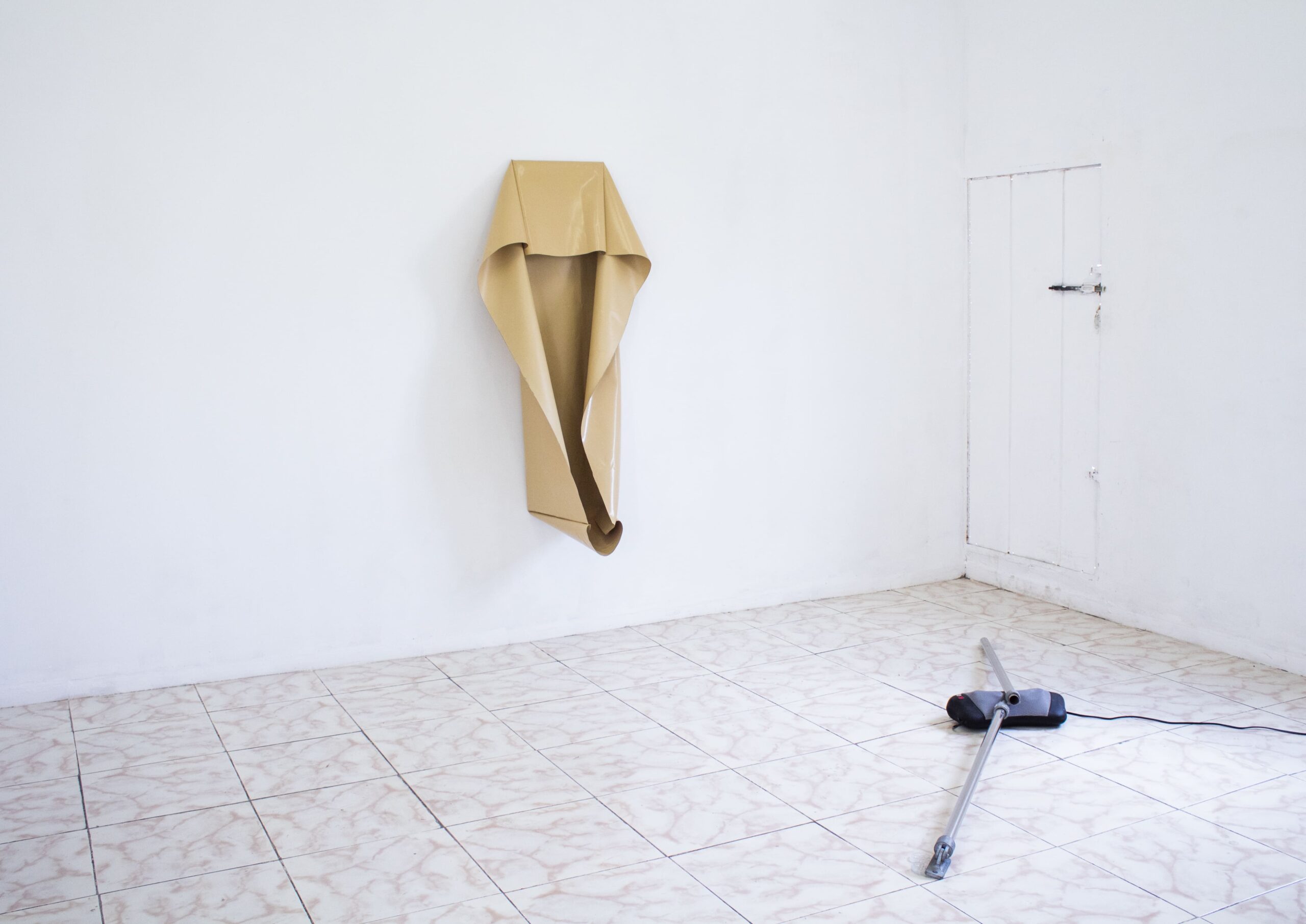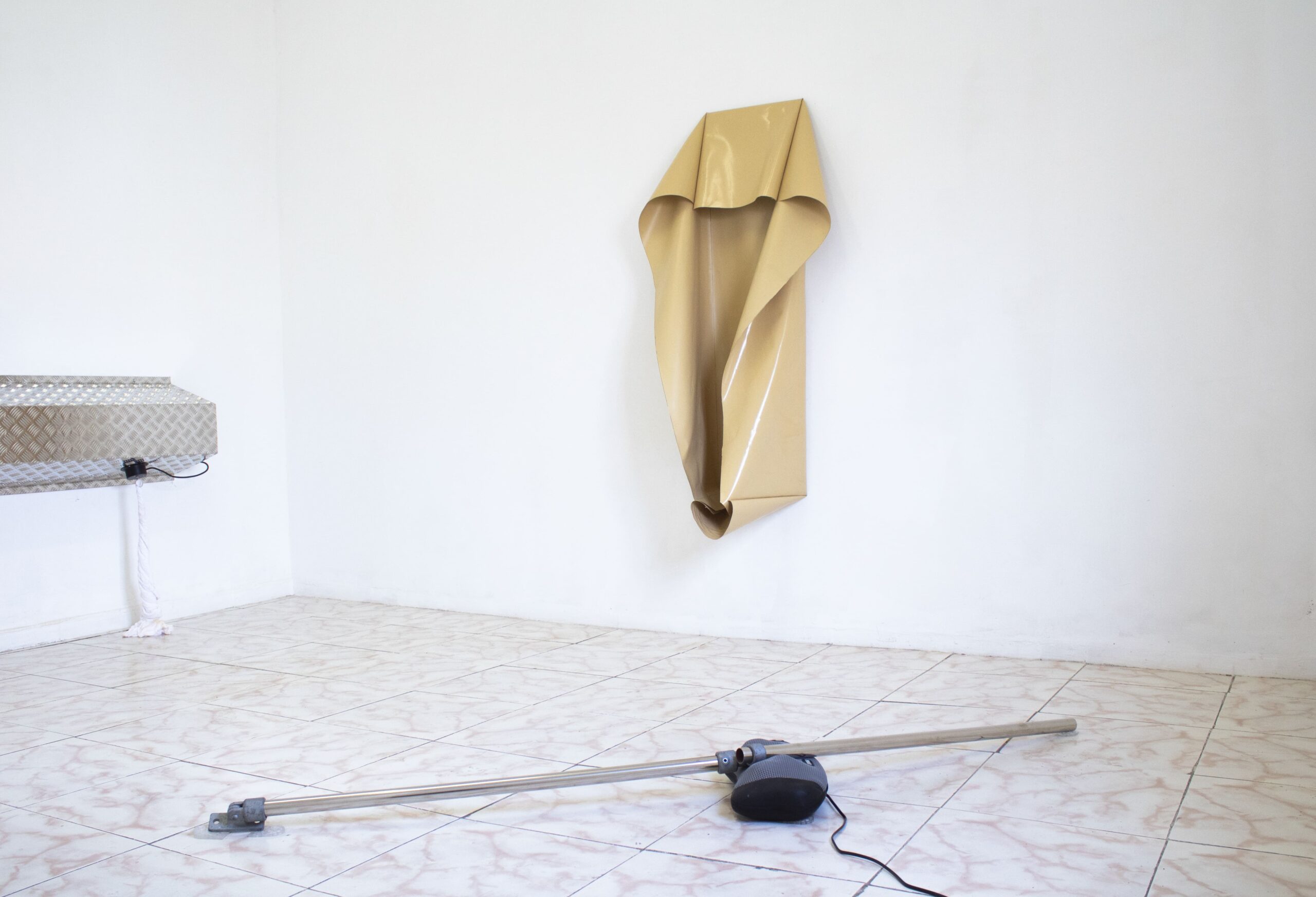 Sin título, 2021. Metal y cuero sintético. Intervención site-specific