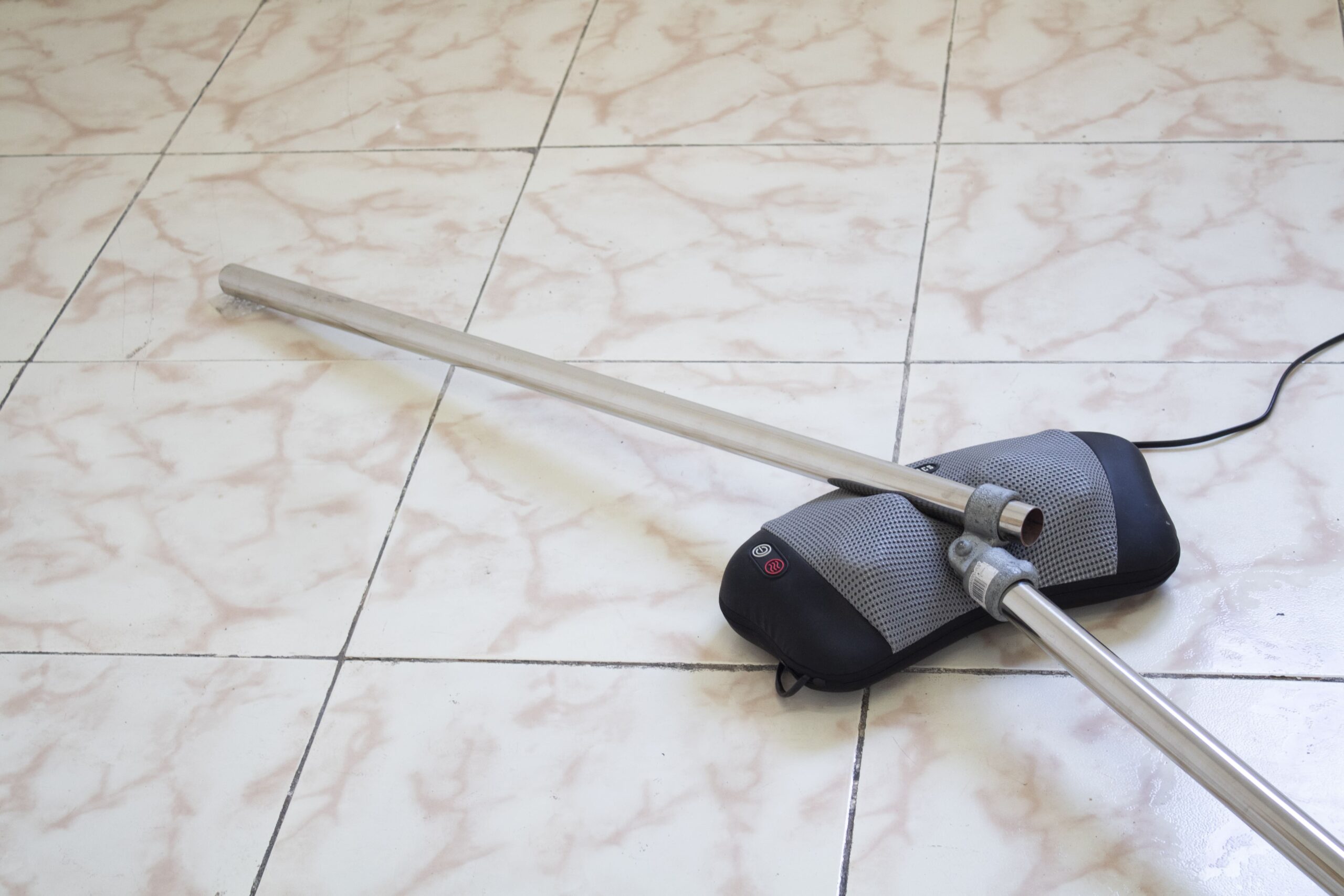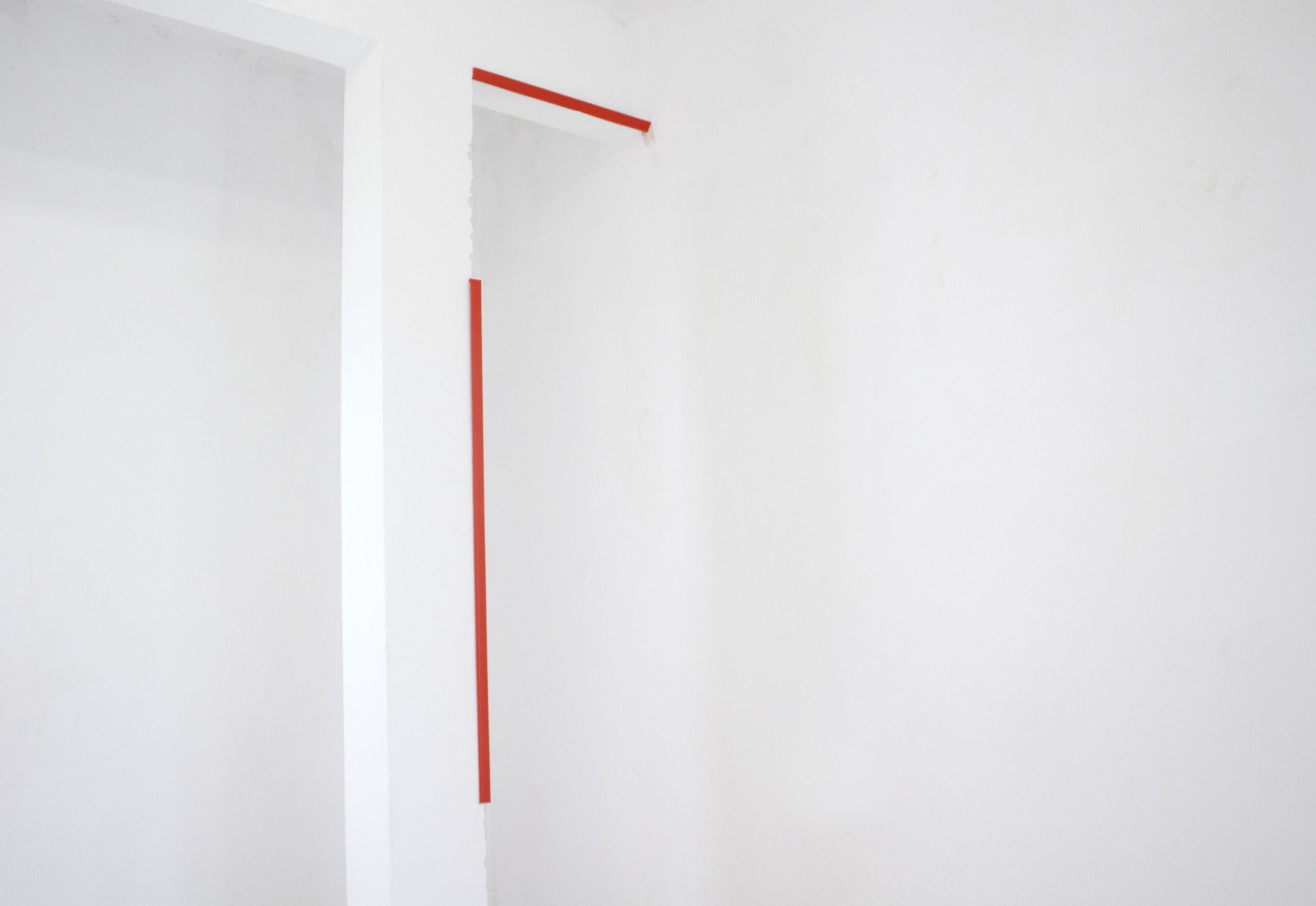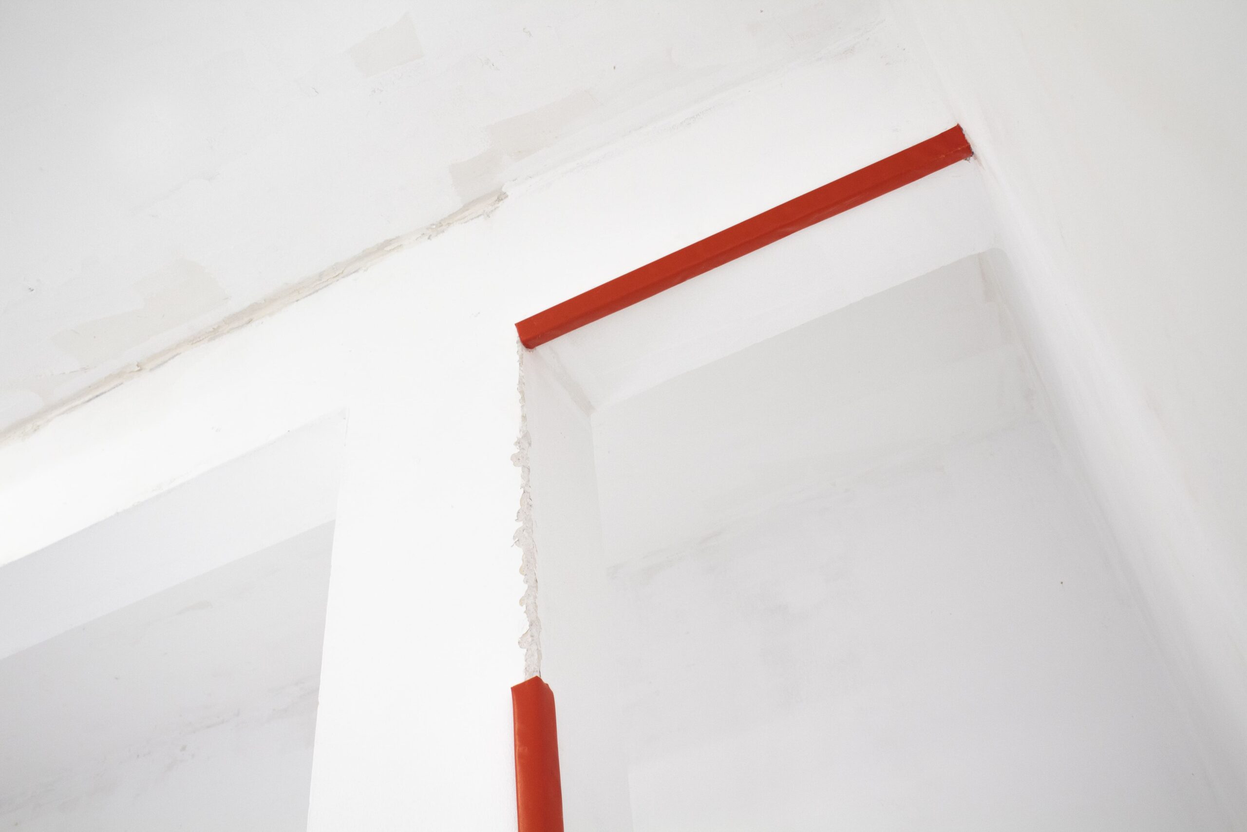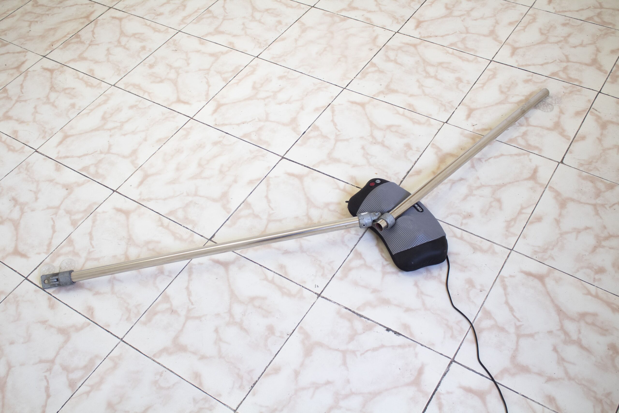 Sin título, 2021. Metal y cuero sintético. Intervención site-specific